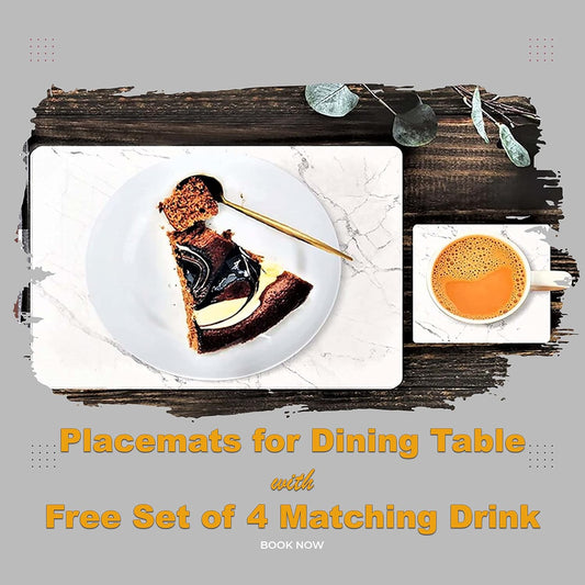 AAMEN 8-Piece Heat Resistant Cork Table Mats – 4 Marble Placemats & 4 Coasters Set