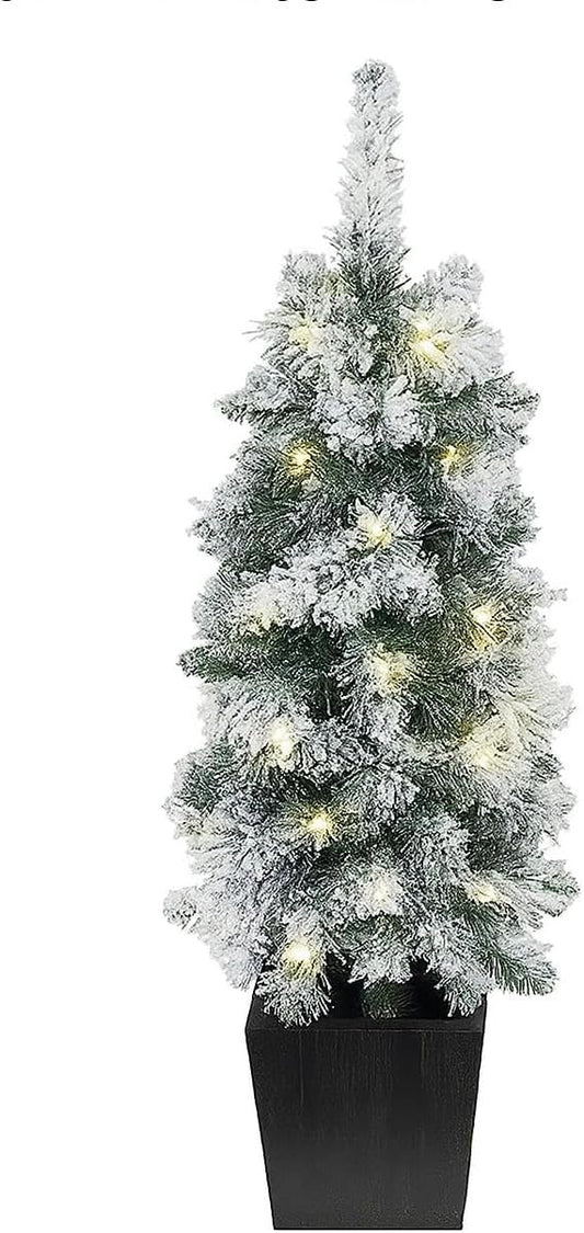 Pre-Lit Frosted Christmas Tree in Pot, 91 cm, 40 LED Warm White Lights, Battery Operated
