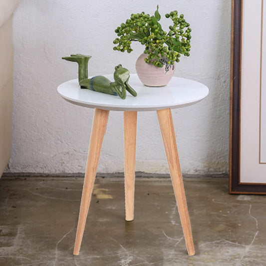 AAMEN Modern Scandinavian Round Coffee Table – 40cm White Top with Bamboo Legs
