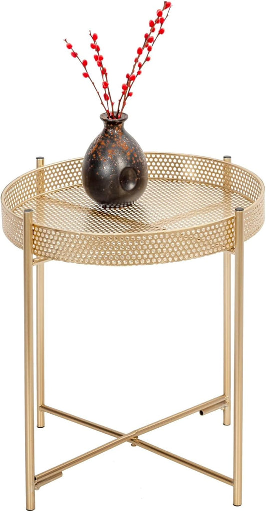 AAMEN Gold Accent Metal End Table, Metal Tray Table with Removable Tray, Anti-Rust Nightstand for Bedroom Balcony Patio Living Room