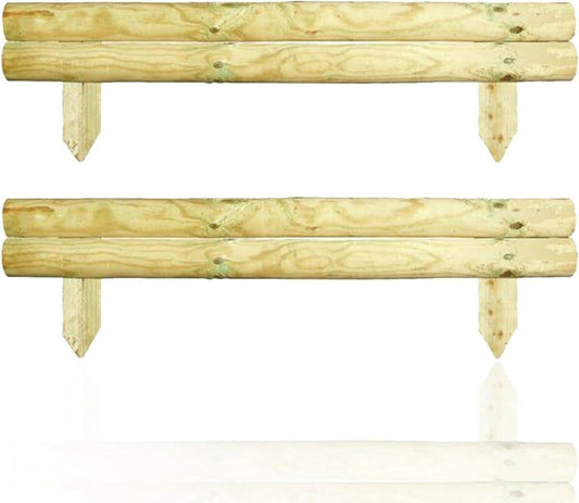 AAMEN 2 Bar Wooden Border Edging,Fixed Picket Fence Edging, Lawn Edging Border, Horizontal Log Roll Border Edging Ideal for Flowerbeds, Small Boundary Fencing(H 14 x W 100 x D 7 cm)