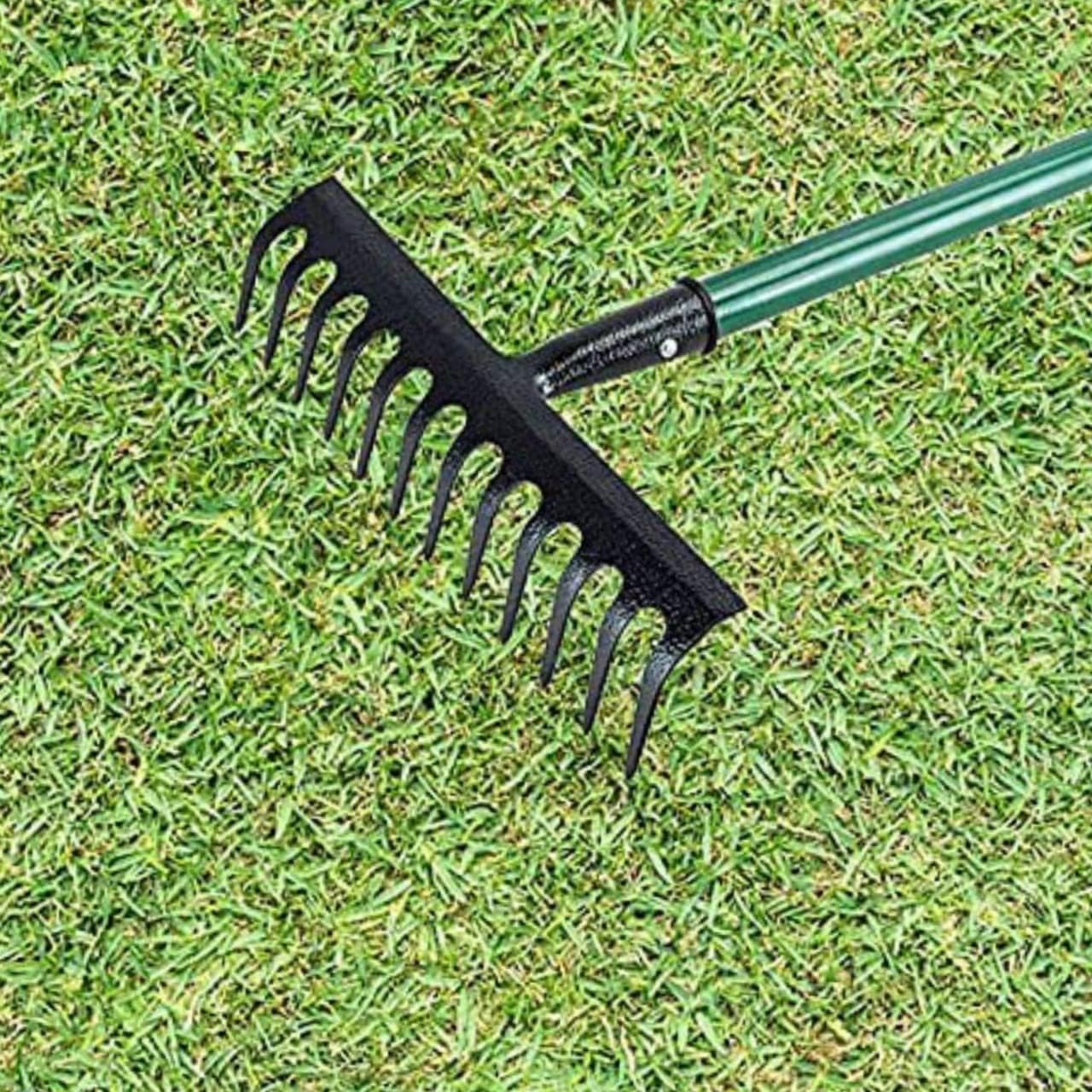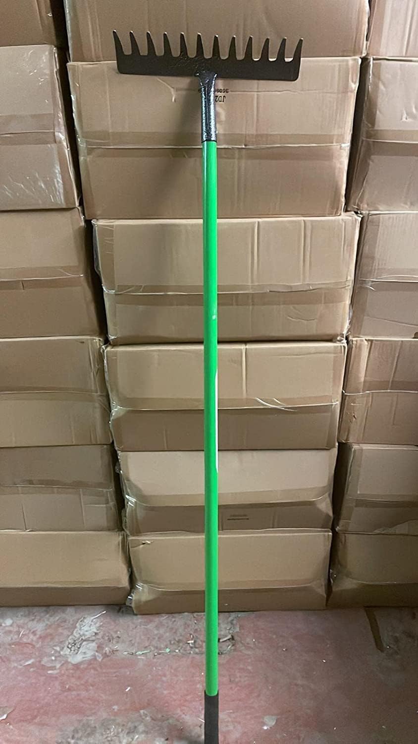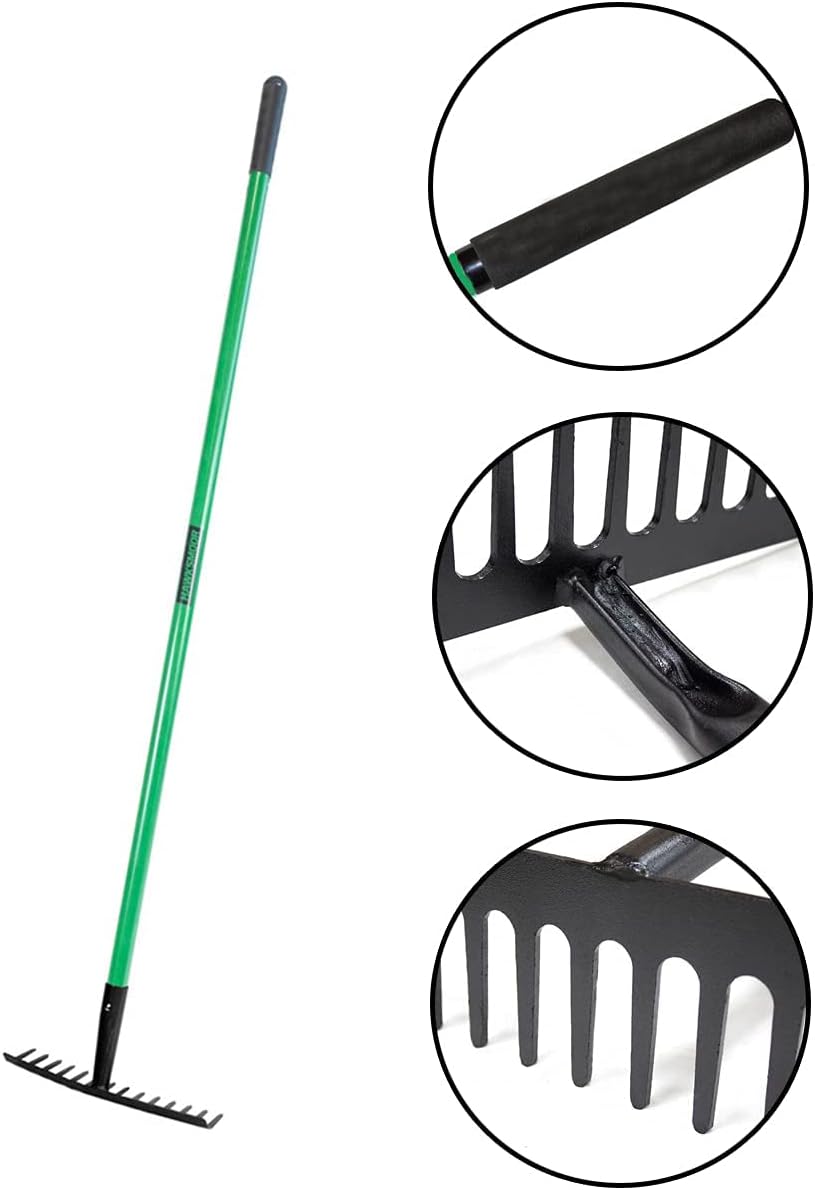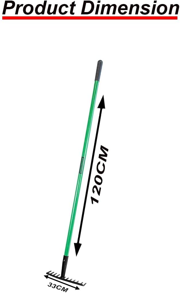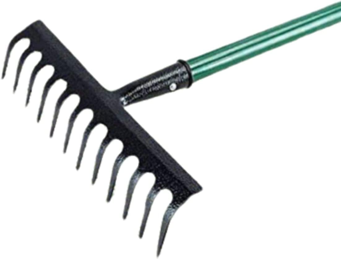 AAMEN 12 Teeth Heavy Duty Garden Rake – Carbon Steel Soil & Leaf Rake for Gardening (120x32x9cm, Black)