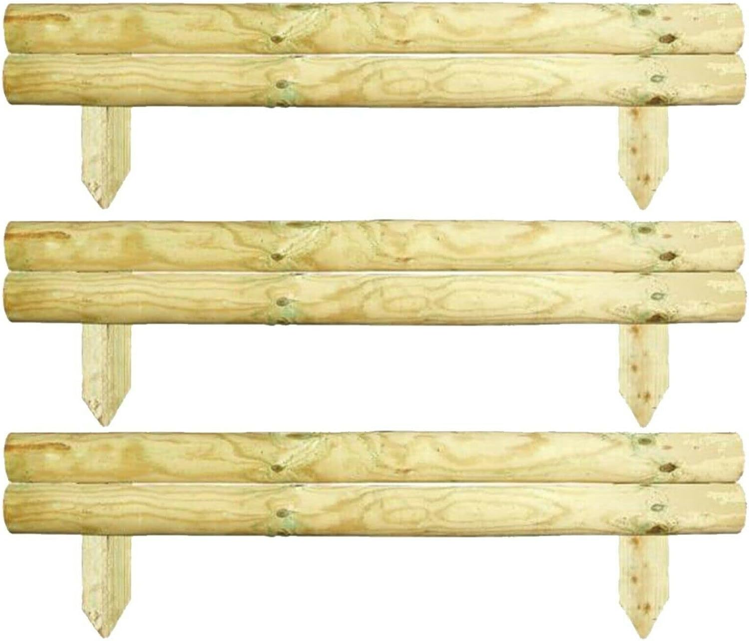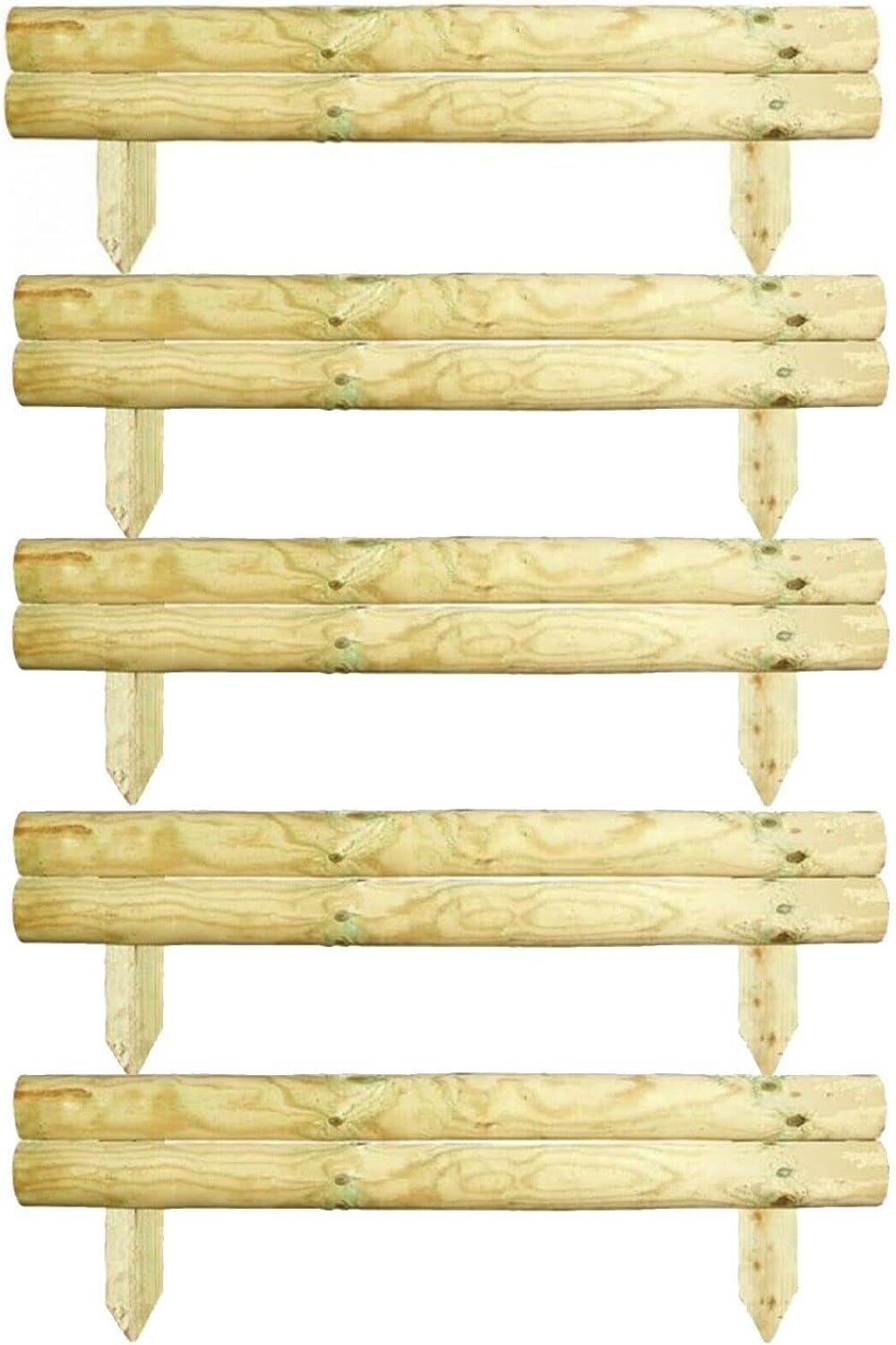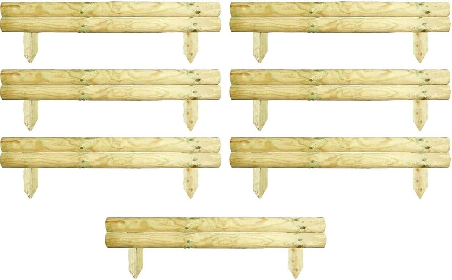 AAMEN 2 Bar Wooden Border Edging,Fixed Picket Fence Edging, Lawn Edging Border, Horizontal Log Roll Border Edging Ideal for Flowerbeds, Small Boundary Fencing(H 14 x W 100 x D 7 cm)
