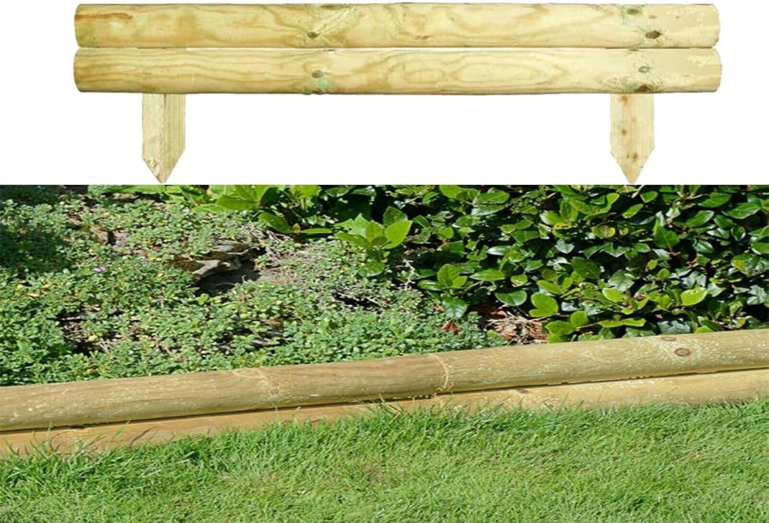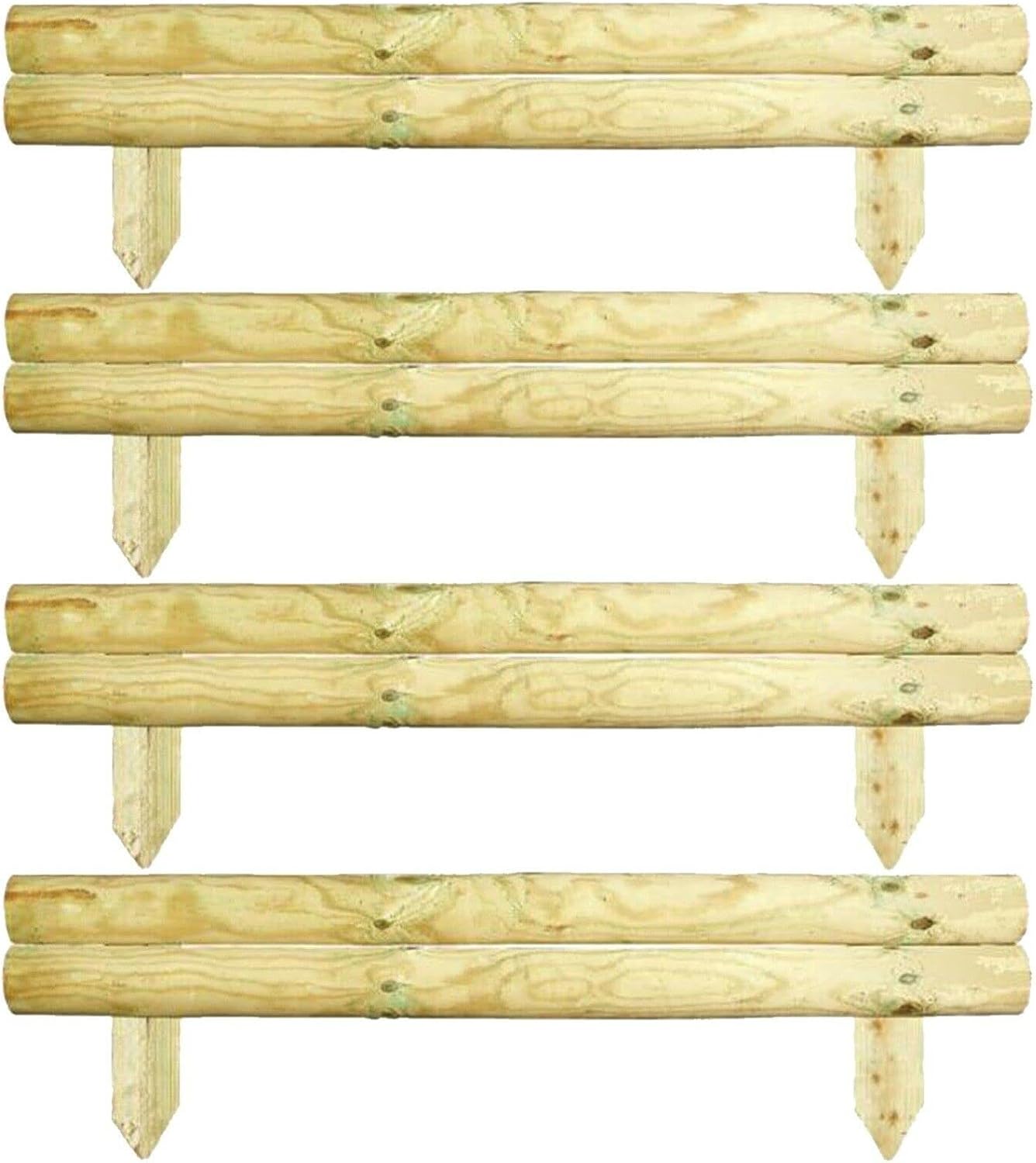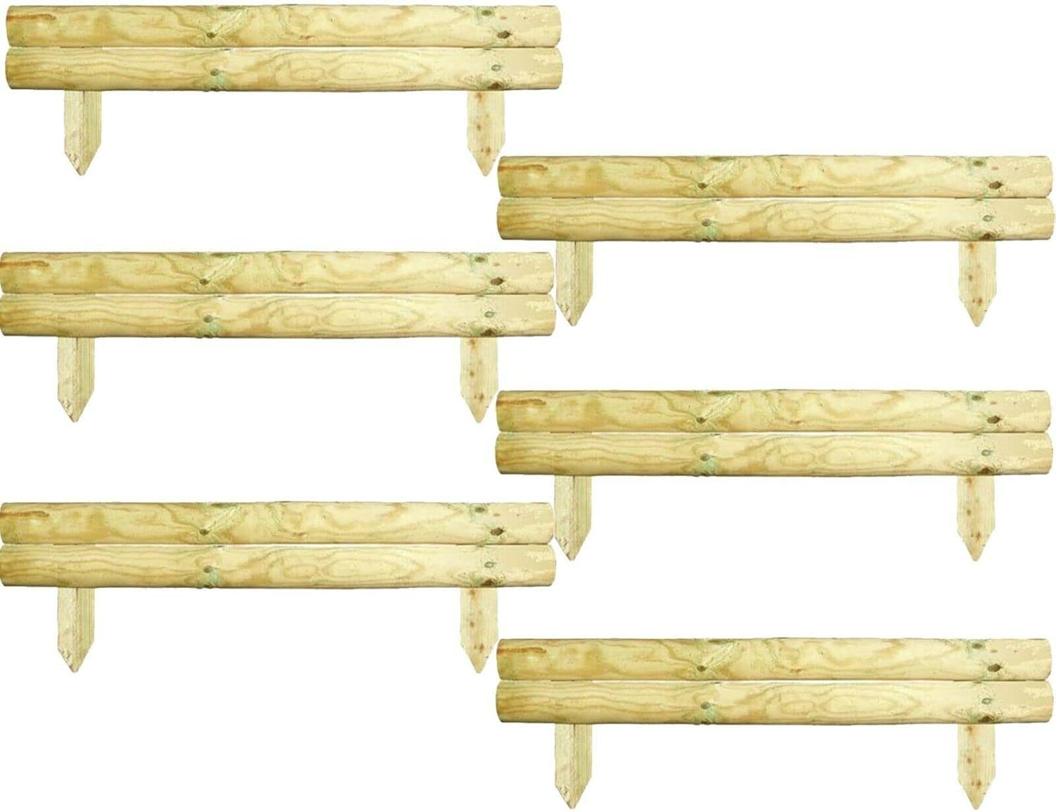 AAMEN 2 Bar Wooden Border Edging,Fixed Picket Fence Edging, Lawn Edging Border, Horizontal Log Roll Border Edging Ideal for Flowerbeds, Small Boundary Fencing(H 14 x W 100 x D 7 cm)