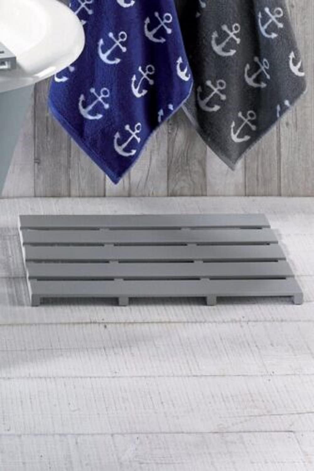 AAMEN Bamboo Wooden Bath Mat, Shower Mat Non-Slip Waterproof, Bathroom Floor Mat for Indoor Outdoor, Floor Mat for Bathtub Spa, Duckboard Bath Mat, Grey