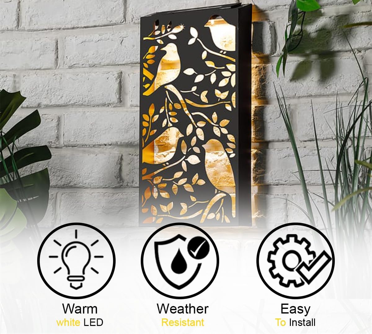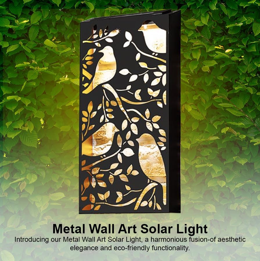 AAMEN Metal Sparrows Wall Art Solar Light – Outdoor LED Fence & Garden Décor with Dusk-to-Dawn Sensor